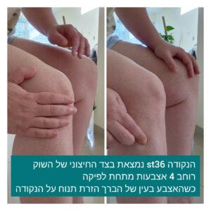 - כאב של כל הראש או כאב ראש עמום קשור לחוסר צ'י ודם – ללחוץ על ST36 (נמצאת בצד החיצוני בשוק, כששמים את האצבע בשקע החיצוני מתחת לפיקה הזרת מגיעה לנקודה). לא להתאמץ בכל זאת – לנוח, להזין את אצמך ולמלא מצברים!